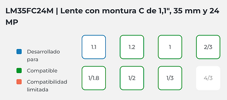 Lente industrial con montura C de 1,1" y 24 megapíxeles