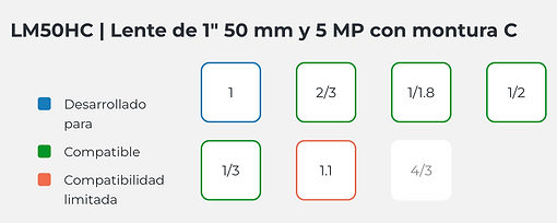 Lente industrial con montura C de 1" y 5 megapíxeles