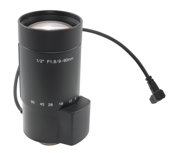 El objetivo varifocal LMVZ990-IR con montura C de 9-90 mm de Kowa está diseñado para sensores de 1/2". Este objetivo tiene una distancia focal variable de 9-90 mm y un rango de apertura de f/1.8 a 360. Cuenta con corrección IR para cámaras día/noche y un diseño asférico que logra una imagen nítida en su periferia.